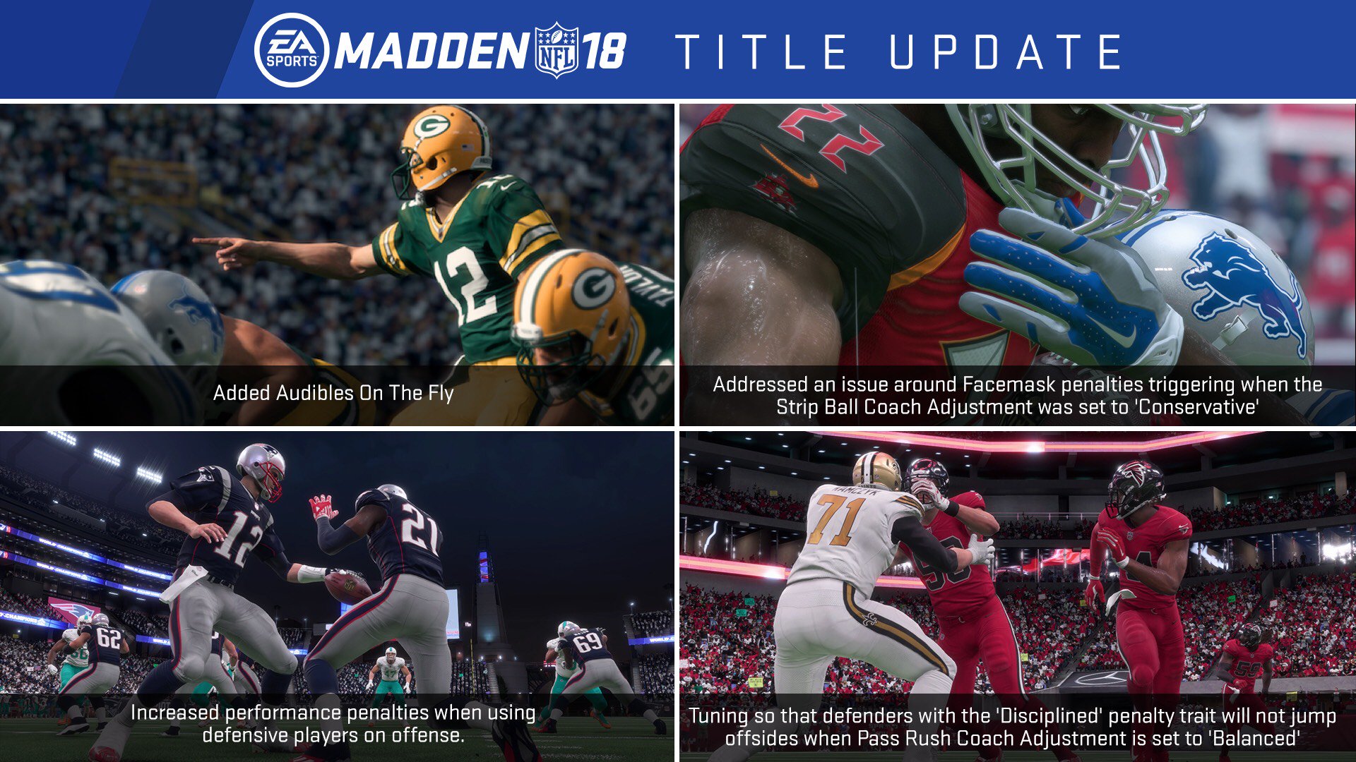 Here is a detailed breakdown of what’s included in the latest title update now live in Madden NFL 18.